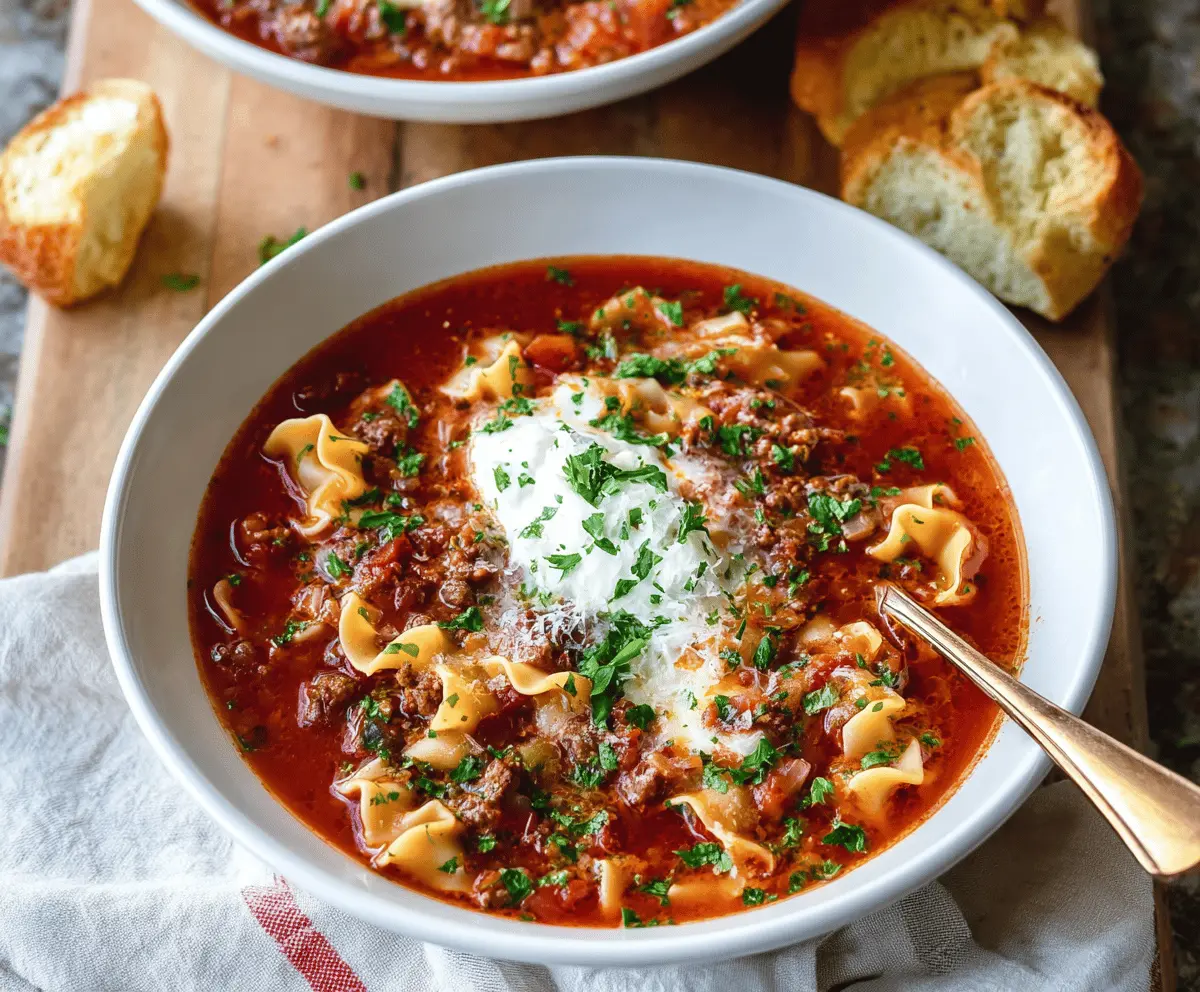 This Slow Cooker Ground Beef Lasagna Soup is sure to become a family favorite. It captures all the fantastic flavors of lasagna in a cozy bowl that’s perfect for any day of the week!