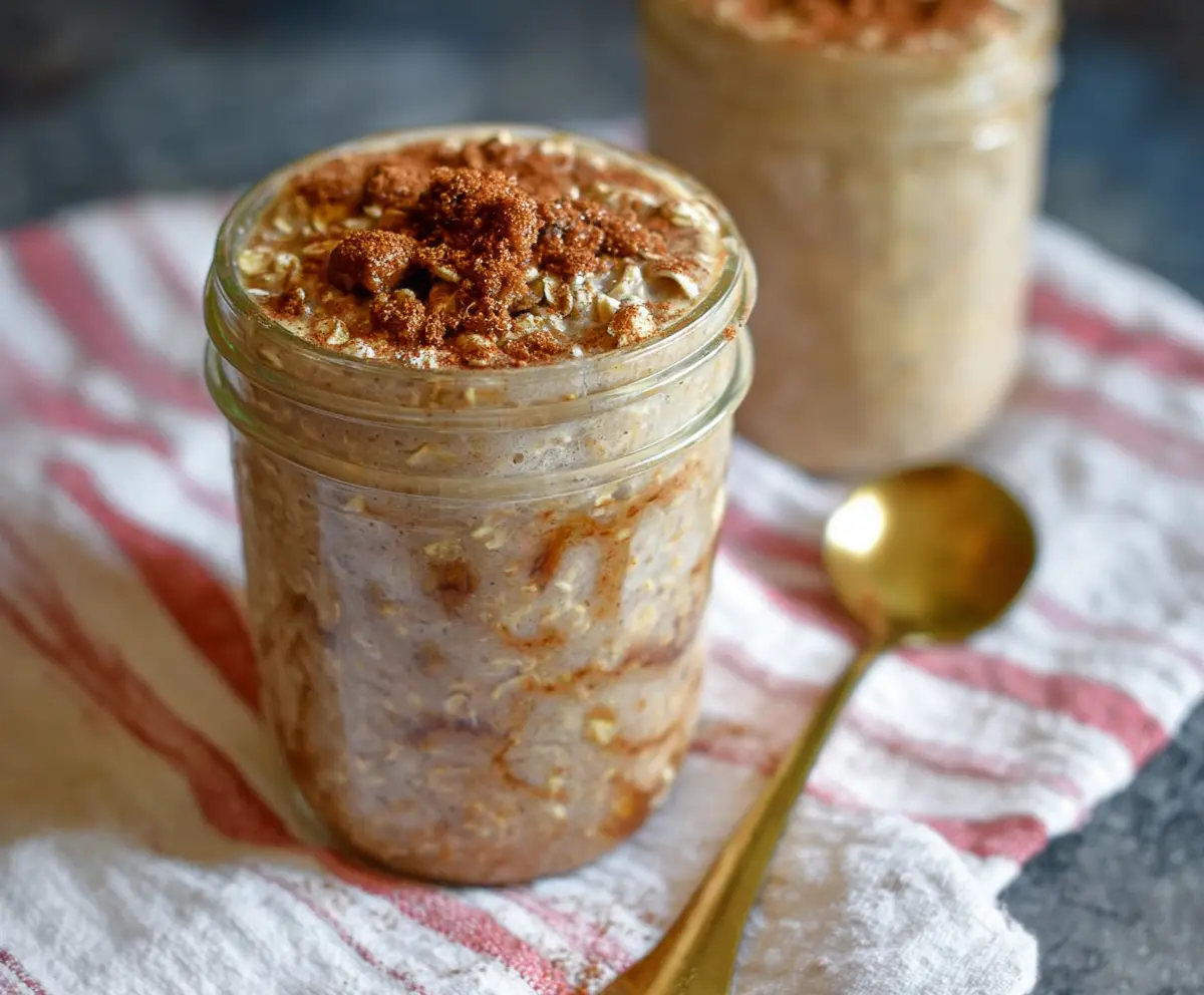 These oats are perfect for busy mornings—just mix everything in a jar and let them sit overnight. I can’t resist adding a sprinkle of extra cinnamon on top! 🍽️