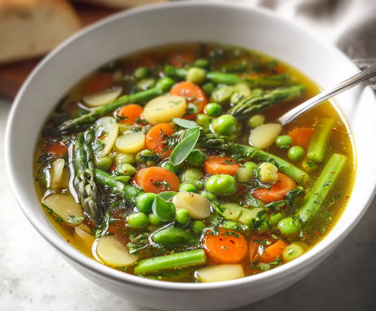 This Spring Vegetable Soup is a colorful and tasty mix of fresh veggies like carrots, peas, and green beans. It’s light, healthy, and perfect for warming up chilly days!