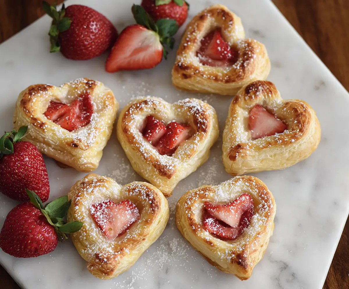 These Strawberry Danish Hearts are a sweet treat that looks as good as they taste! Flaky pastry filled with creamy custard and juicy strawberries is simply delightful.
