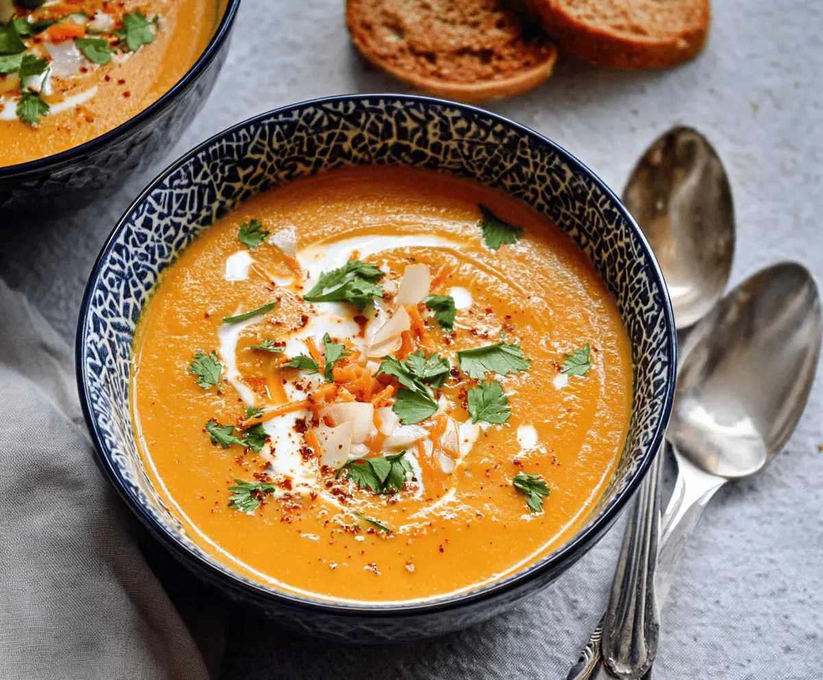 Warm and comforting sweet potato and carrot curry soup in a bowl, perfect for a nutritious meal.