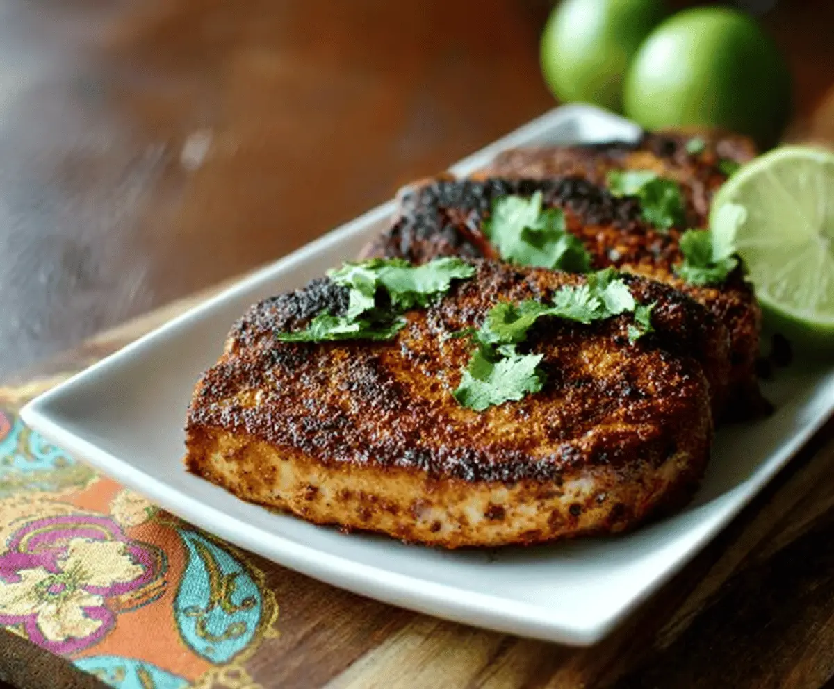 Once done, remove the pork chops from the heat and let them rest for about 3-5 minutes. This waiting time allows the juices to redistribute, keeping the chops juicy. Then, garnish with fresh cilantro and serve with lime wedges for that extra zing!