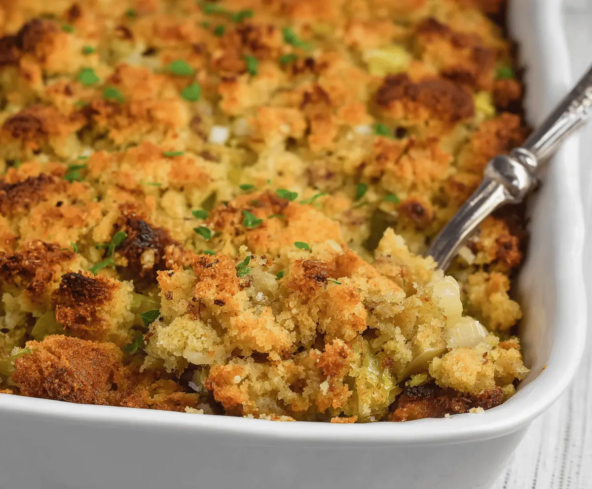 This Southern Cornbread Dressing is a warm, comforting dish made with fluffy cornbread, mixed with tasty vegetables, and spiced just right. It’s perfect for gathering around the table!