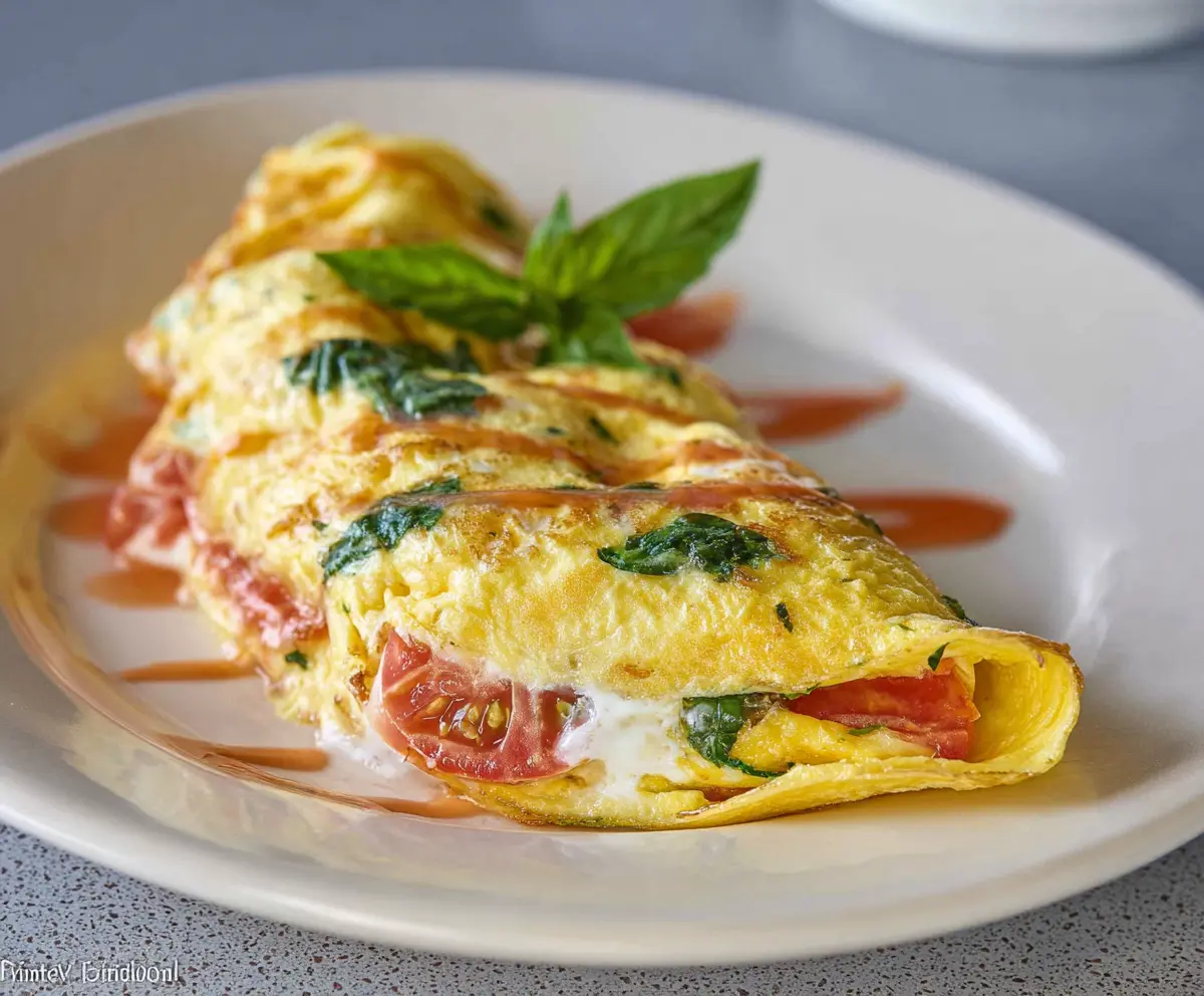 This Tomato Basil Omelet is light and fresh, perfect for breakfast or brunch. Juicy tomatoes and fragrant basil fill this fluffy egg delight.